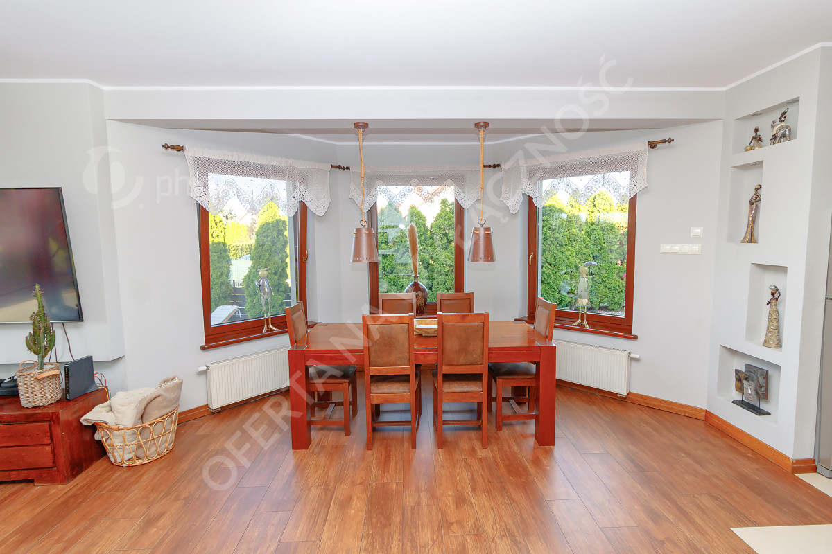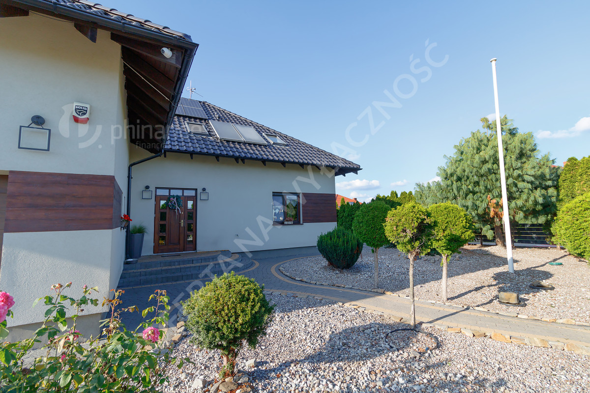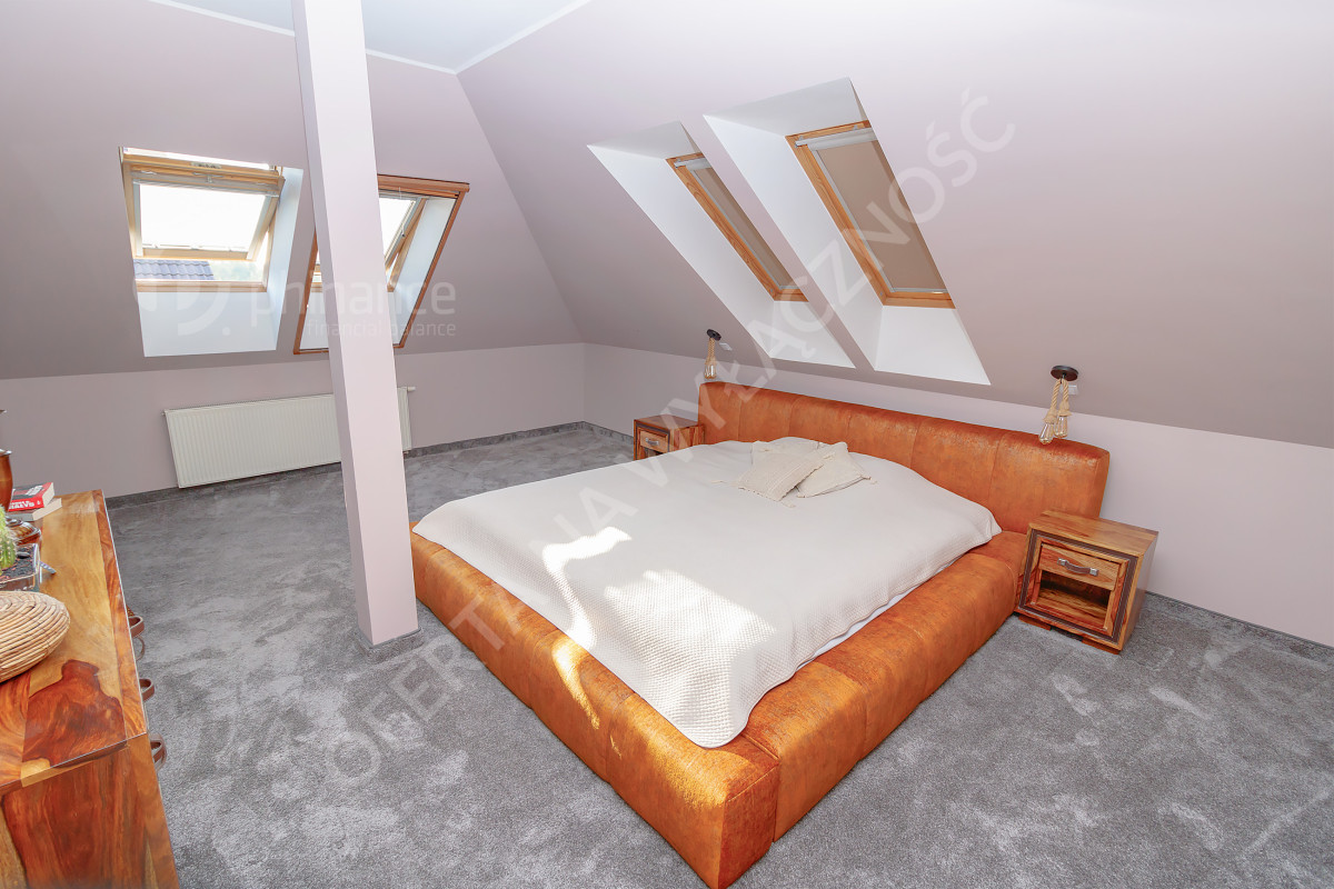 Dom z 2010 r., technologia tradycyjna, ogrzewanie z nowoczesnej i ekonomicznej kotłowni, fotowoltaika 7,92 kW. Wysoka jakość wykończenia, nowa łazienka na piętrze, zabudowa kuchni. W części dziennej salon z aneksem (55 m²), gabinet; na piętrze trzy olbrzymie sypialnie, w tym pokój małżeński z łazienką i garderobą.