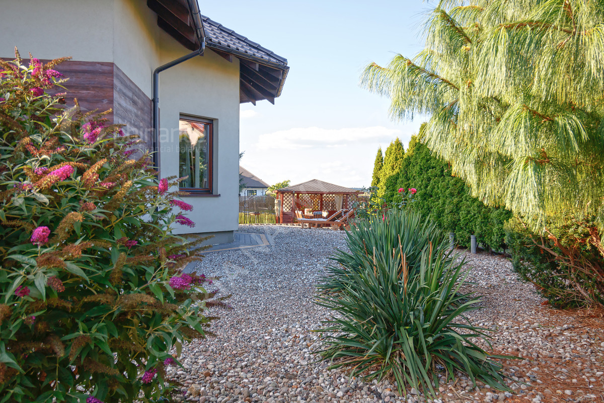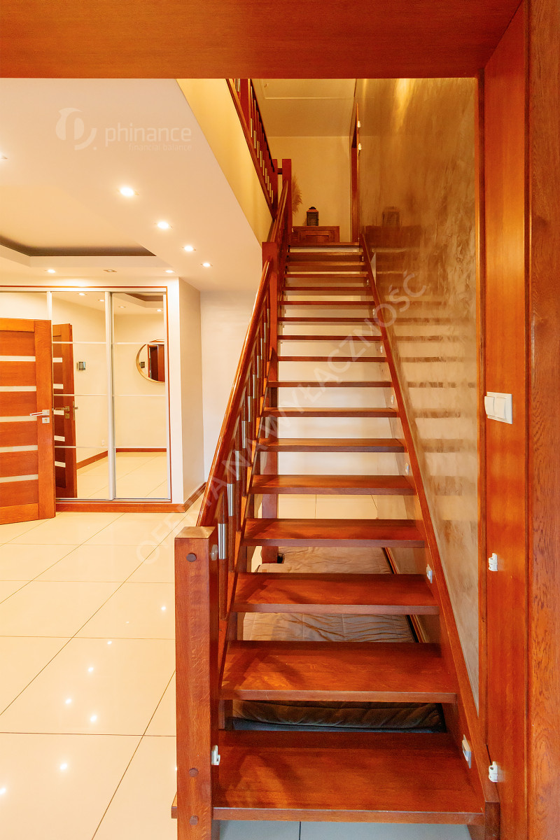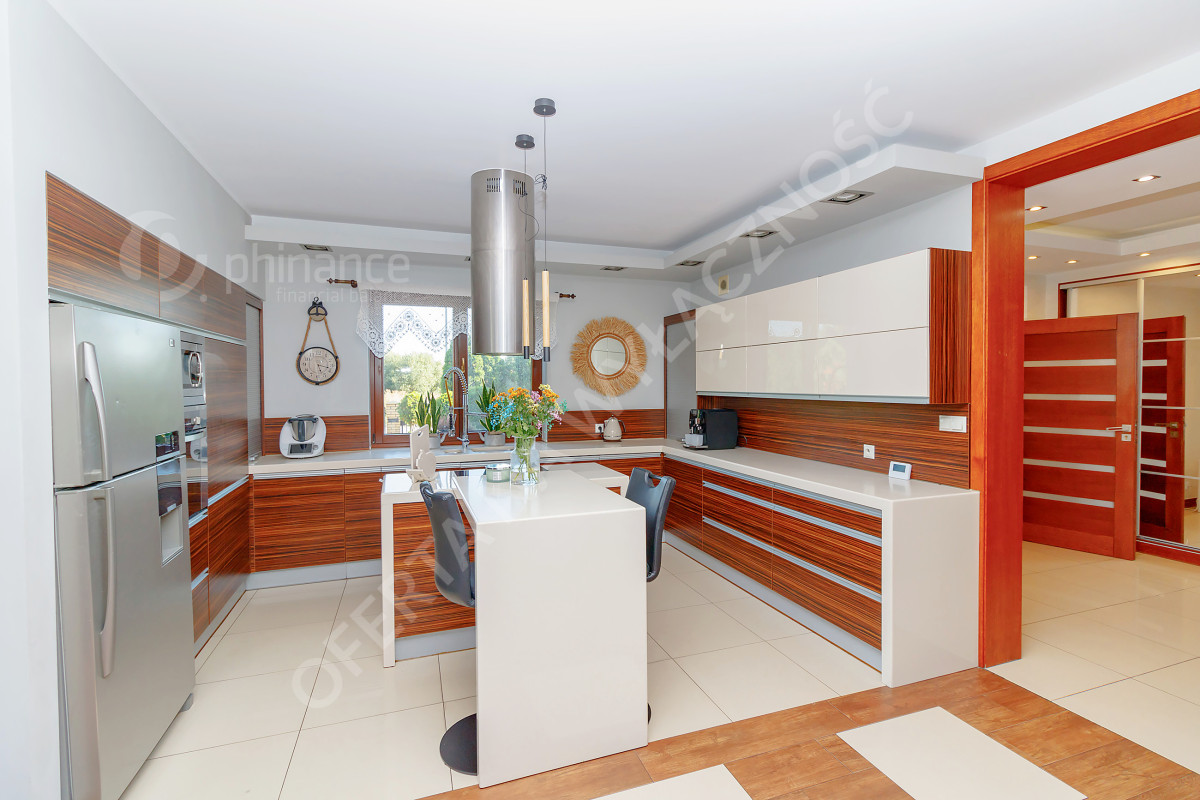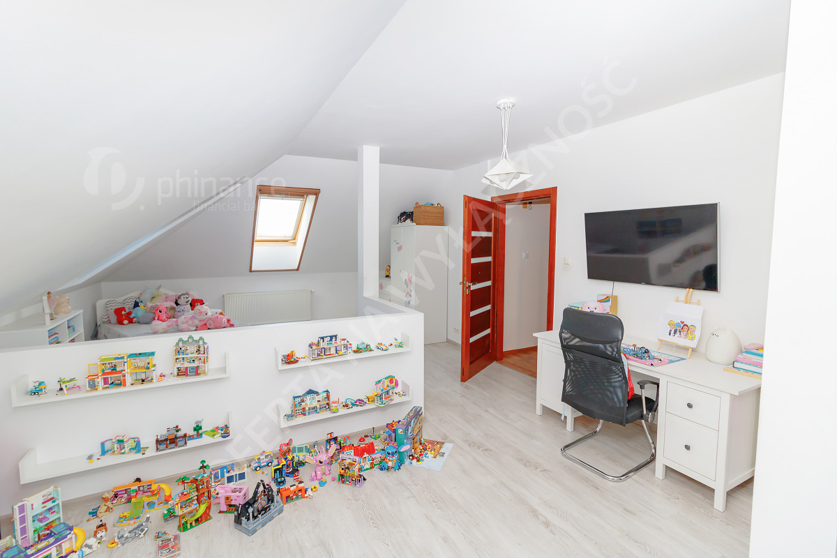 Dom z 2010 r., technologia tradycyjna, ogrzewanie z nowoczesnej i ekonomicznej kotłowni, fotowoltaika 7,92 kW. Wysoka jakość wykończenia, nowa łazienka na piętrze, zabudowa kuchni. W części dziennej salon z aneksem (55 m²), gabinet; na piętrze trzy olbrzymie sypialnie, w tym pokój małżeński z łazienką i garderobą.