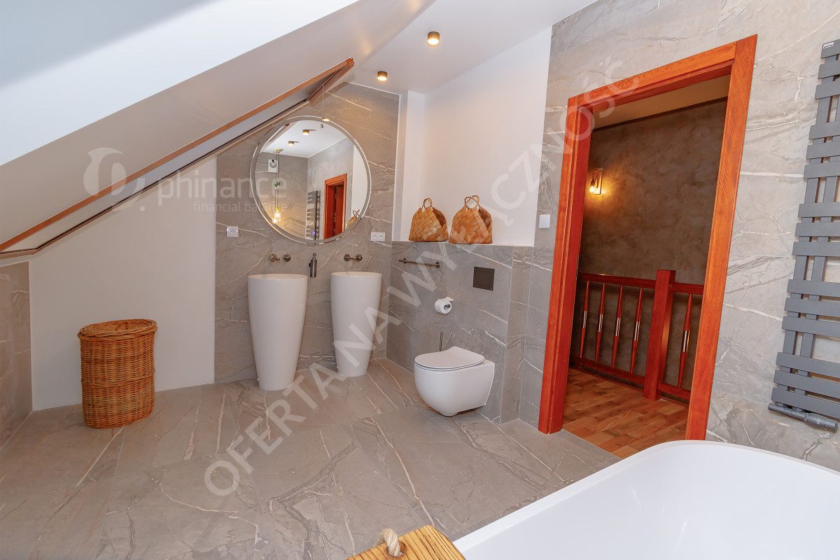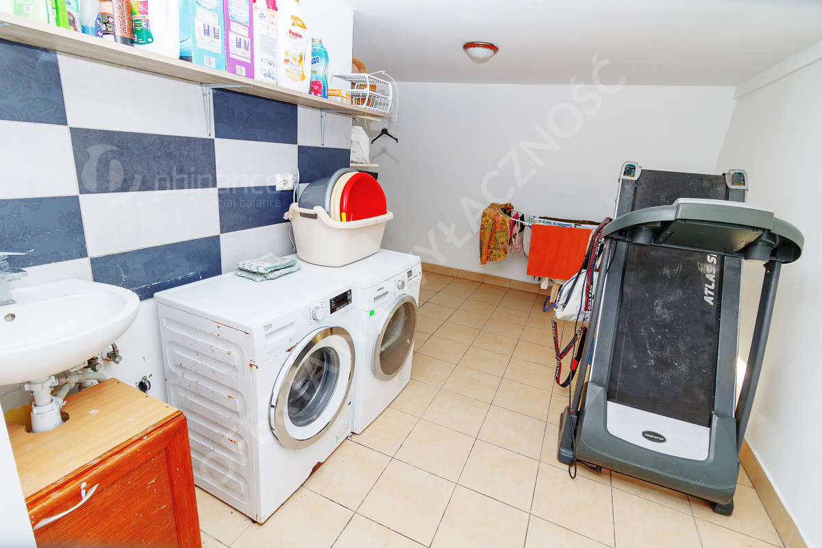 W bryle także osobne mieszkanie 2-pokojowe (dla dziadków? na biuro?), garaż dwustanowiskowy i piwnica ponad 50 m2 (sauna? siłownia? chill room?). Dom idealny dla dużej rodziny, dwóch pokoleń lub osób pracujących z domu.