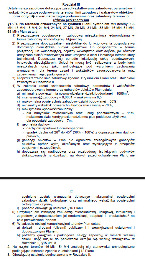 - minimalna powierzchnia działki w MPZP: 1000 m²