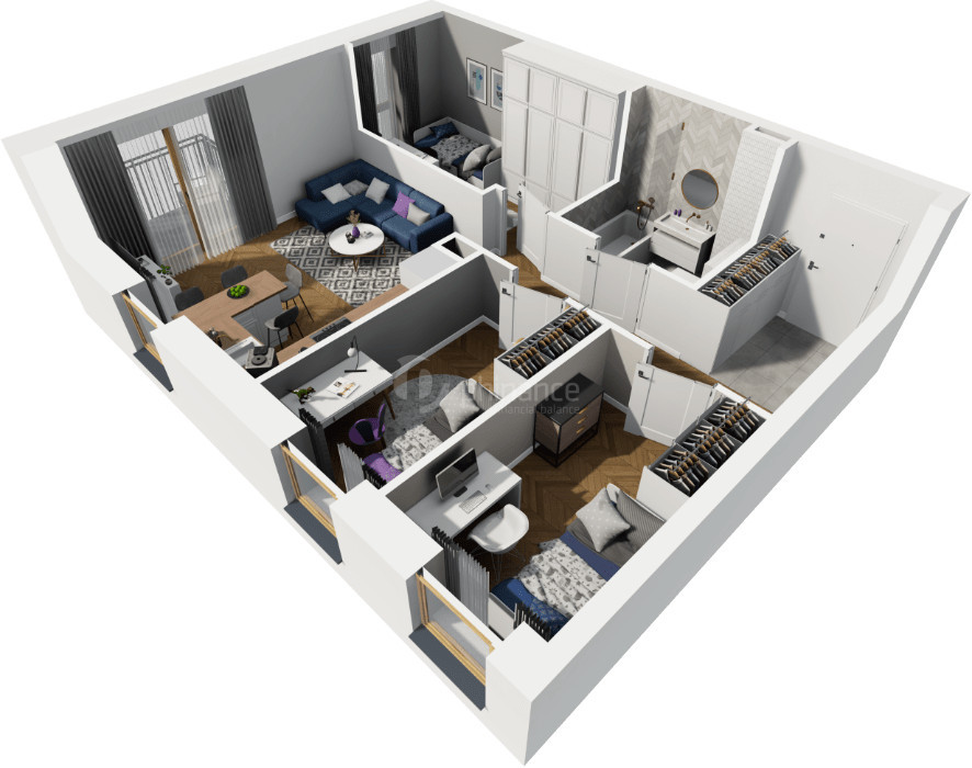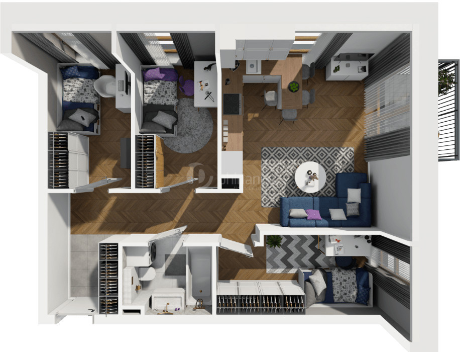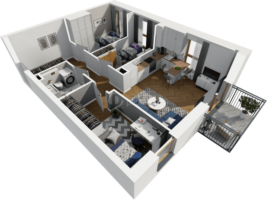 Efektywny układ 4 pokoi na 55 m²