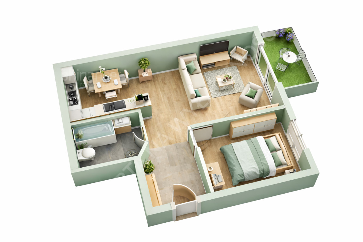 41,71 m² idealnie rozplanowanej przestrzeni w spokojnej, zielonej okolicy. Idealne dla singla, pary, rodzin, dla tych, którzy cenią ciszę, ekologię i komfort.