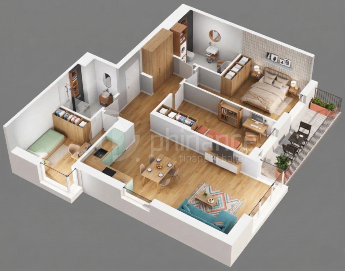 Przytulne, funkcjonalne mieszkanie 4 pokojowe zaprojektowane z myślą o komforcie codziennego życia. Jasny pokój dzienny z aneksem kuchennym i bezpośrednim wyjściem na balkon (teoretycznie parter - praktycznie 1 piętro), tworzy naturalne przedłużenie strefy dziennej - idealne do relaksu i porannej kawy. Układ mieszkania jest ergonomiczny, z wyraźnym podziałem na część dzienną i sypialnianą.