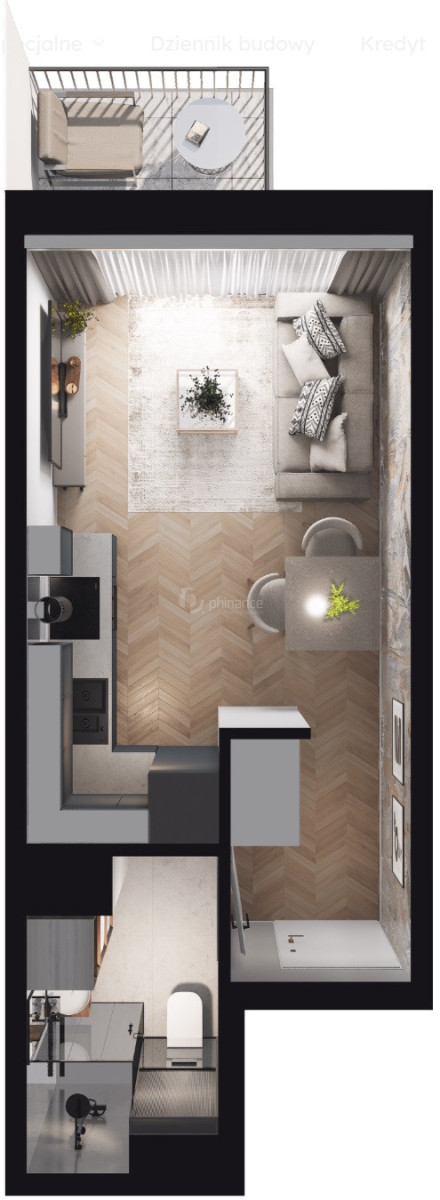 Wizualizacje mają charakter poglądowy i nie stanowią elementu oferty w rozumieniu art. 66 Kodeksu cywilnego. Mieszkanie sprzedawane jest w stanie deweloperskim.