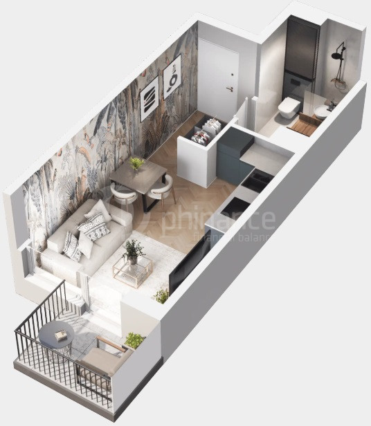 Balkon 3,77 m² - miejsce na kawę (mini ogródek dla mieszkań parterowych).