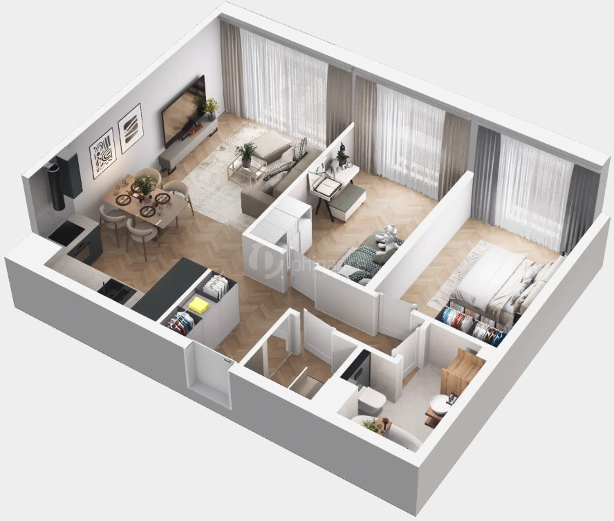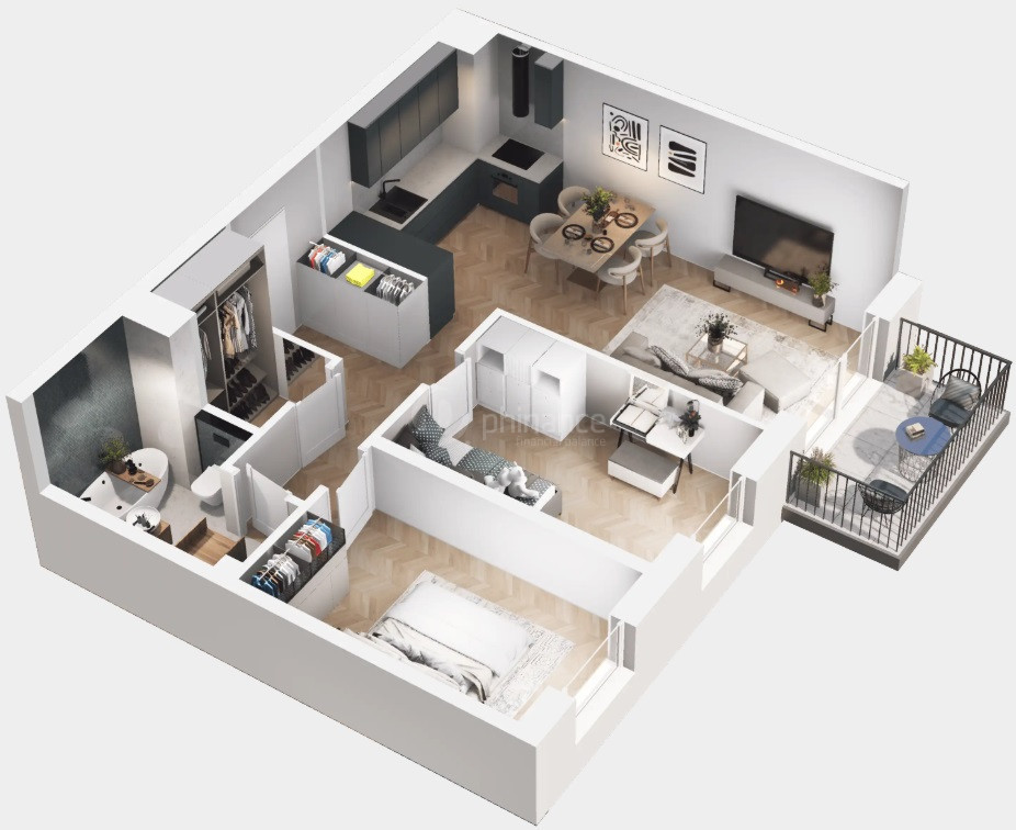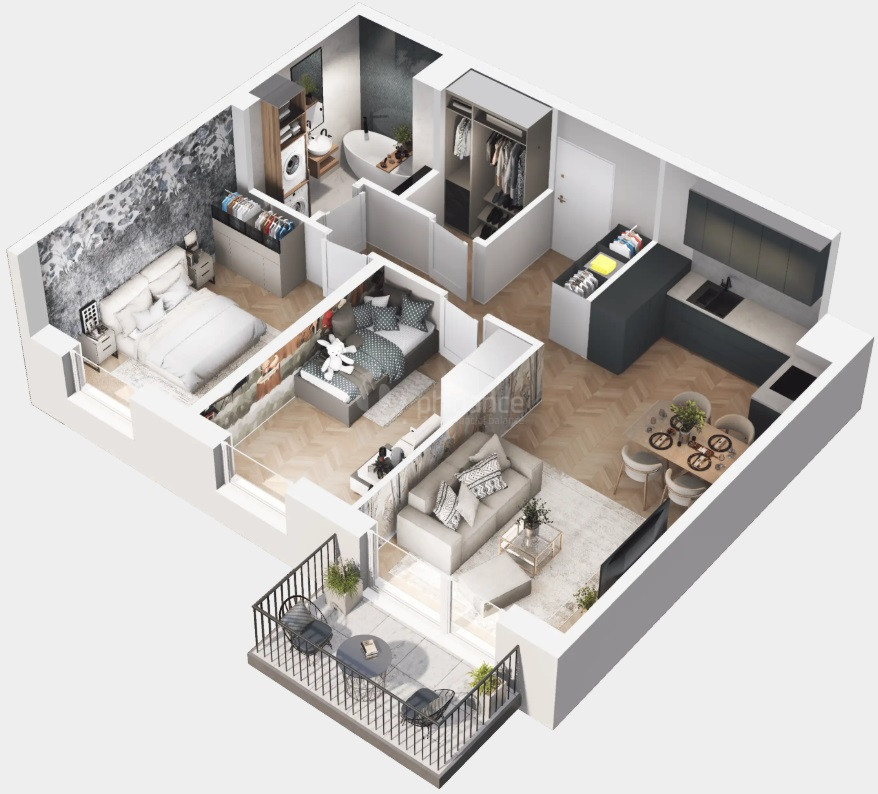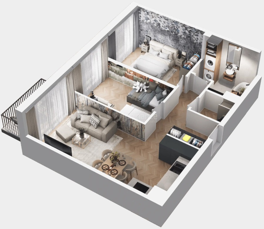 Wizualizacje mają charakter poglądowy i nie stanowią elementu oferty w rozumieniu art. 66 Kodeksu cywilnego. Mieszkanie sprzedawane jest w stanie deweloperskim.