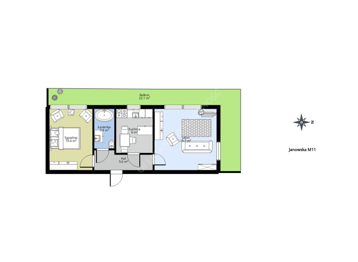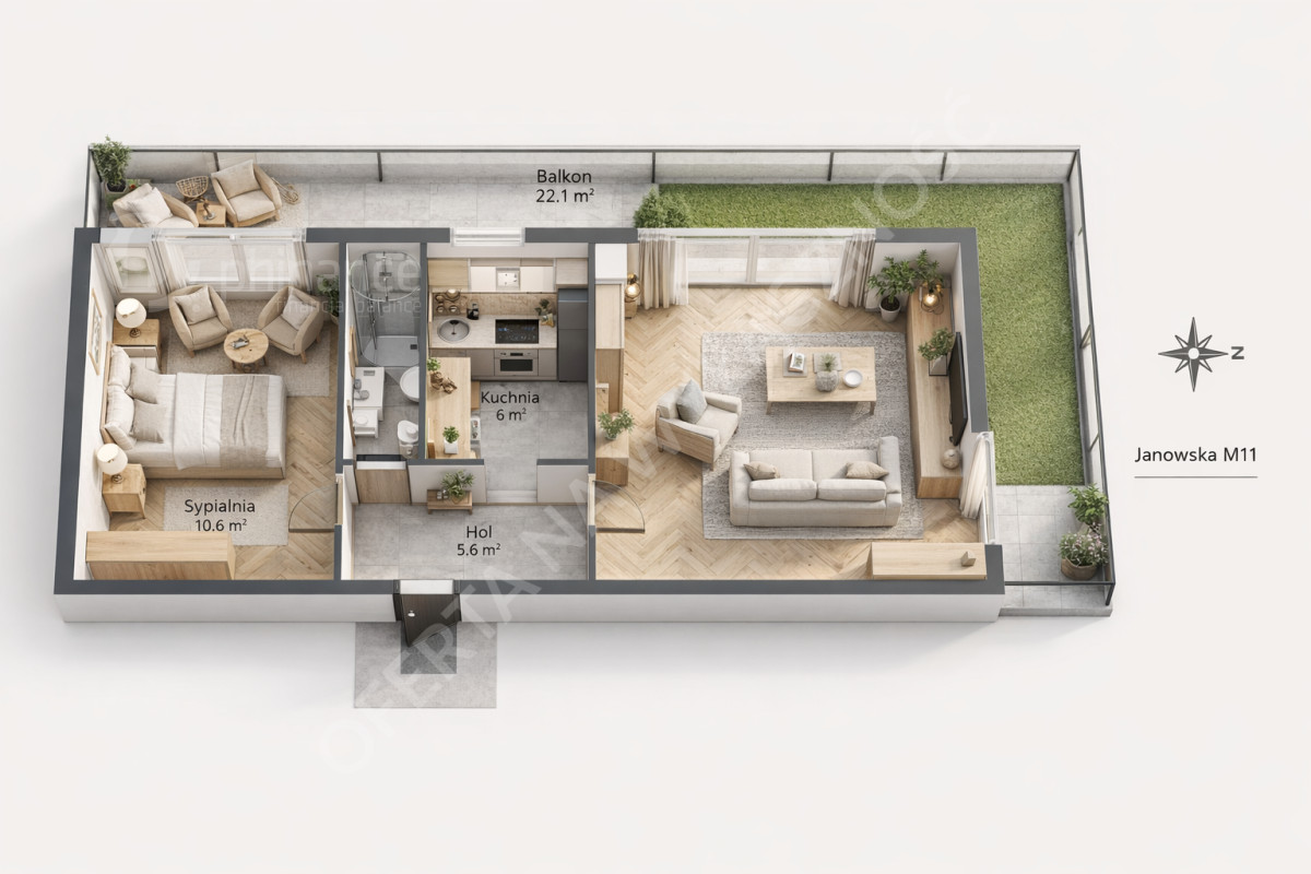 - FUNKCJONALNY UKŁAD: Mieszkanie o pow. 43,75 m² składa się z przestronnego salonu (15,78 m²), sypialni (10,61m²) oddzielnej kuchni (6,04m²) oraz łazienki (3,46 m²) .