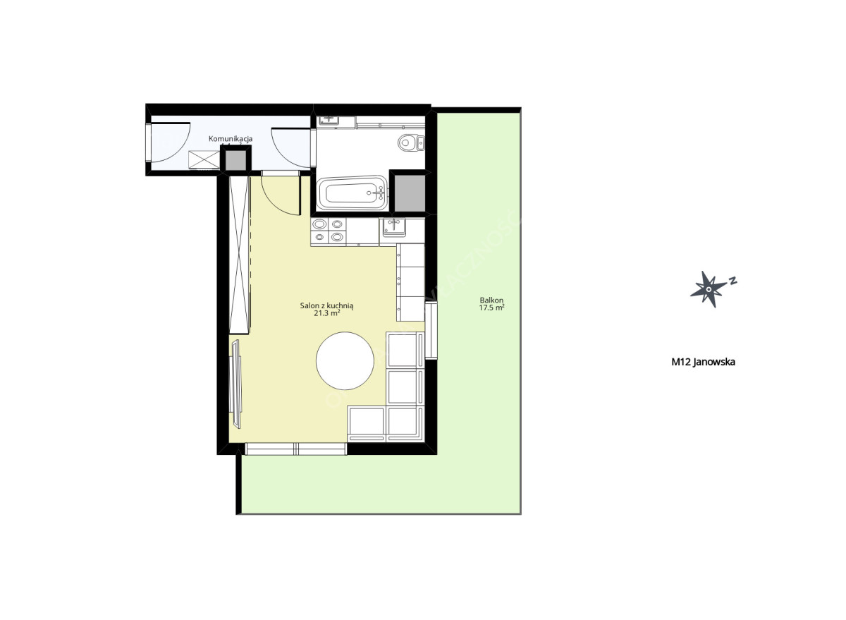 Kompaktowe i bardzo funkcjonalne mieszkanie położone na 3 piętrze kameralnego budynku Janowska 44 w Gdyni. Standard deweloperski. Lokal ma powierzchnię 29,63 m² i posiada duży balkon o powierzchni 17,52 m².