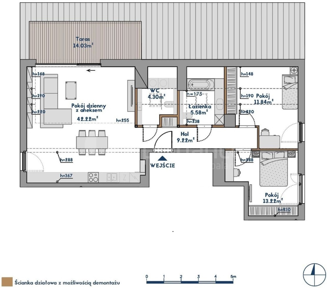• Pokój dzienny - 42,22 m²