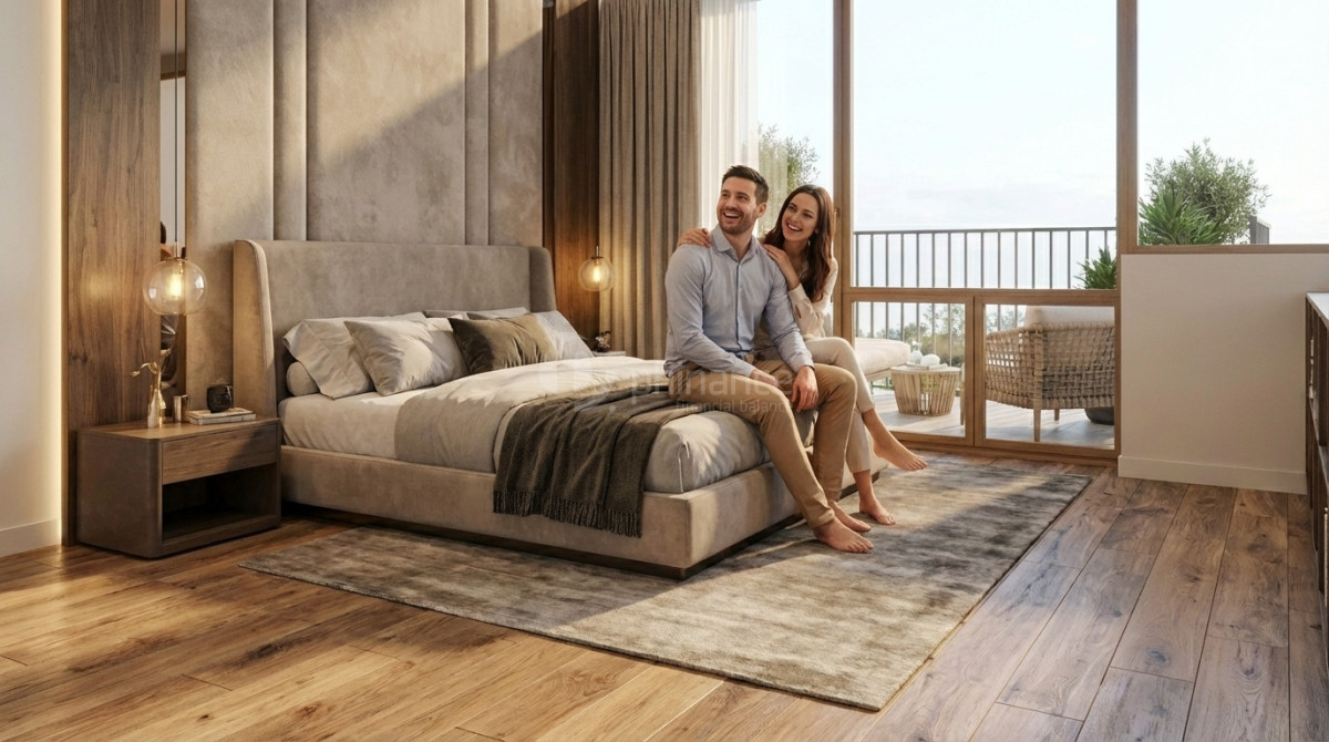 Od progu mieszkańców powita starannie zaprojektowana przestrzeń wspólna z eleganckim połączeniem barw, faktur i materiałów. Na parterze dominują płytki podłogowe z klasycznym motywem szachownicy, panele ścienne imitujące drewno oraz grafitowe akcenty elewacji. Stonowane beże na piętrach dają wnętrzom charakteru, spokoju i harmonii, a całość dopełnią gustowne balustrady, duże lustra i stylowe fotografie.