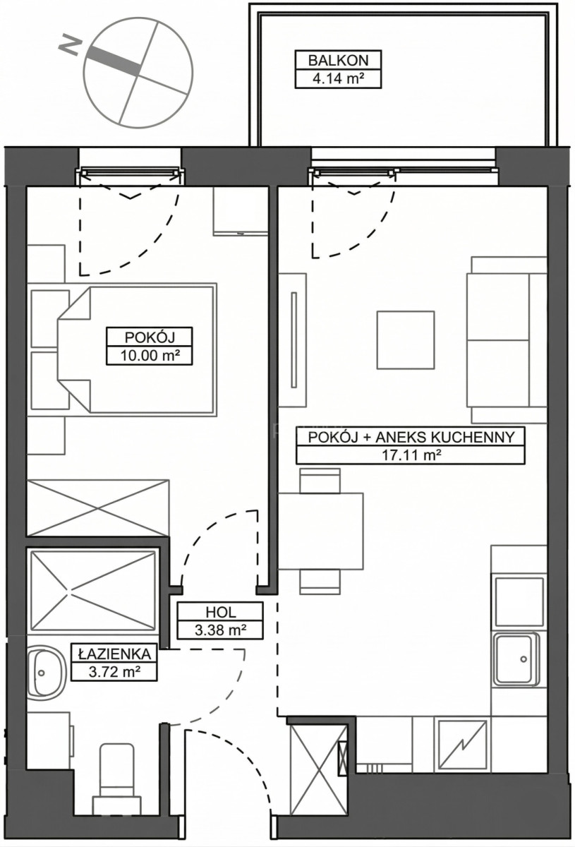 • Salon z aneksem kuchennym (17,11 m²)