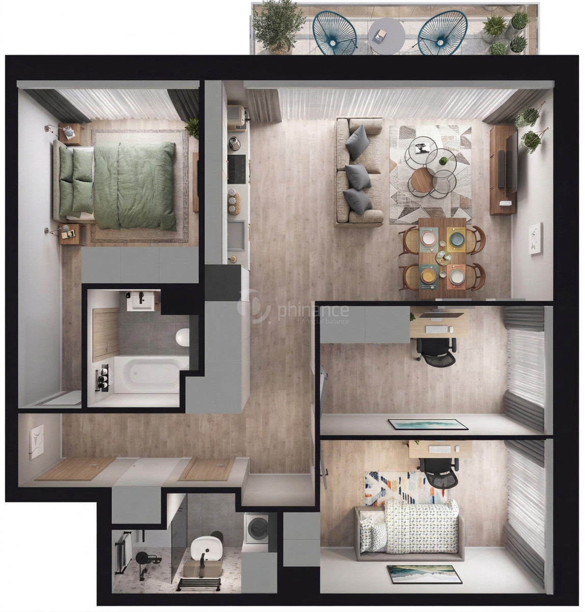 Wizualizacje mają charakter poglądowy i nie stanowią elementu oferty w rozumieniu art. 66 Kodeksu cywilnego. Mieszkanie sprzedawane jest w stanie deweloperskim.