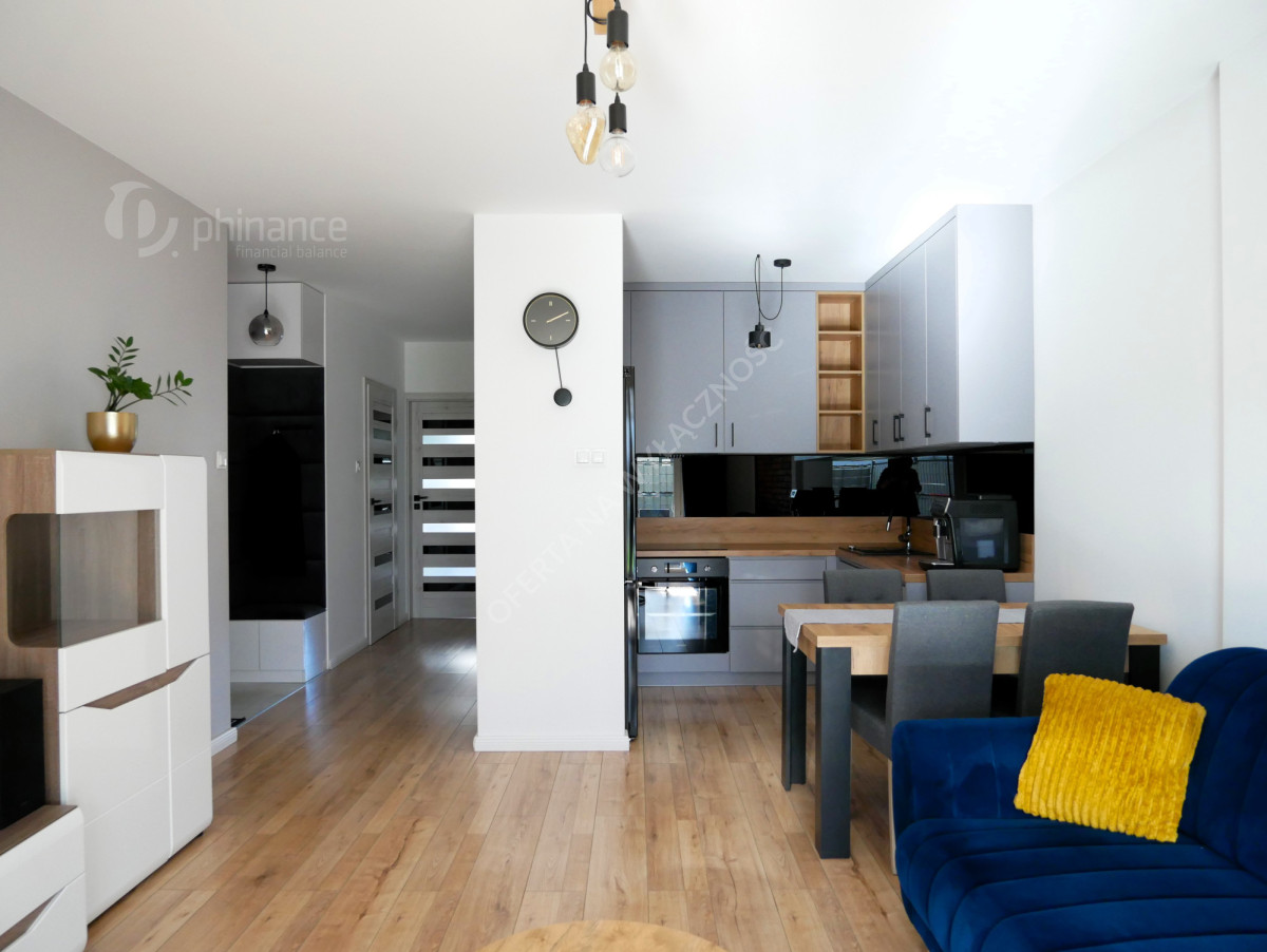 Mieszkanie usytuowane jest na parterze w bloku wybudowanym w 2019 r., oddalonym od głośnej ulicy. Wokół budynku znajduje się niska zabudowa, co zapewnia kameralną atmosferę. Mieszkanie jest gotowe do wprowadzenia i zamieszkania bez ponoszenia żadnych dodatkowych kosztów. Zostało wykończone według zamysłu właścicieli, którzy zadbali o każdy szczegół - dobór materiałów, ich jakość oraz detale co całościowo przełożyło się na funkcjonalność i praktyczność wnętrza.