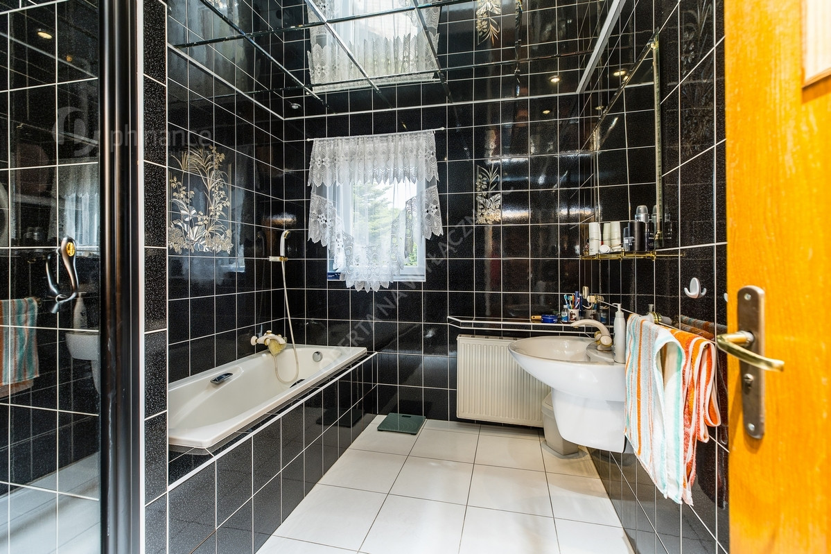 Na piętrze znajdują się 4 przestronne pokoje, w których podłogi wykończone zostały drewnianądeską. Łazienka wyposażona w wannę i prysznic. Wydzielone pomieszczenia dzienne oraz sypialniane.